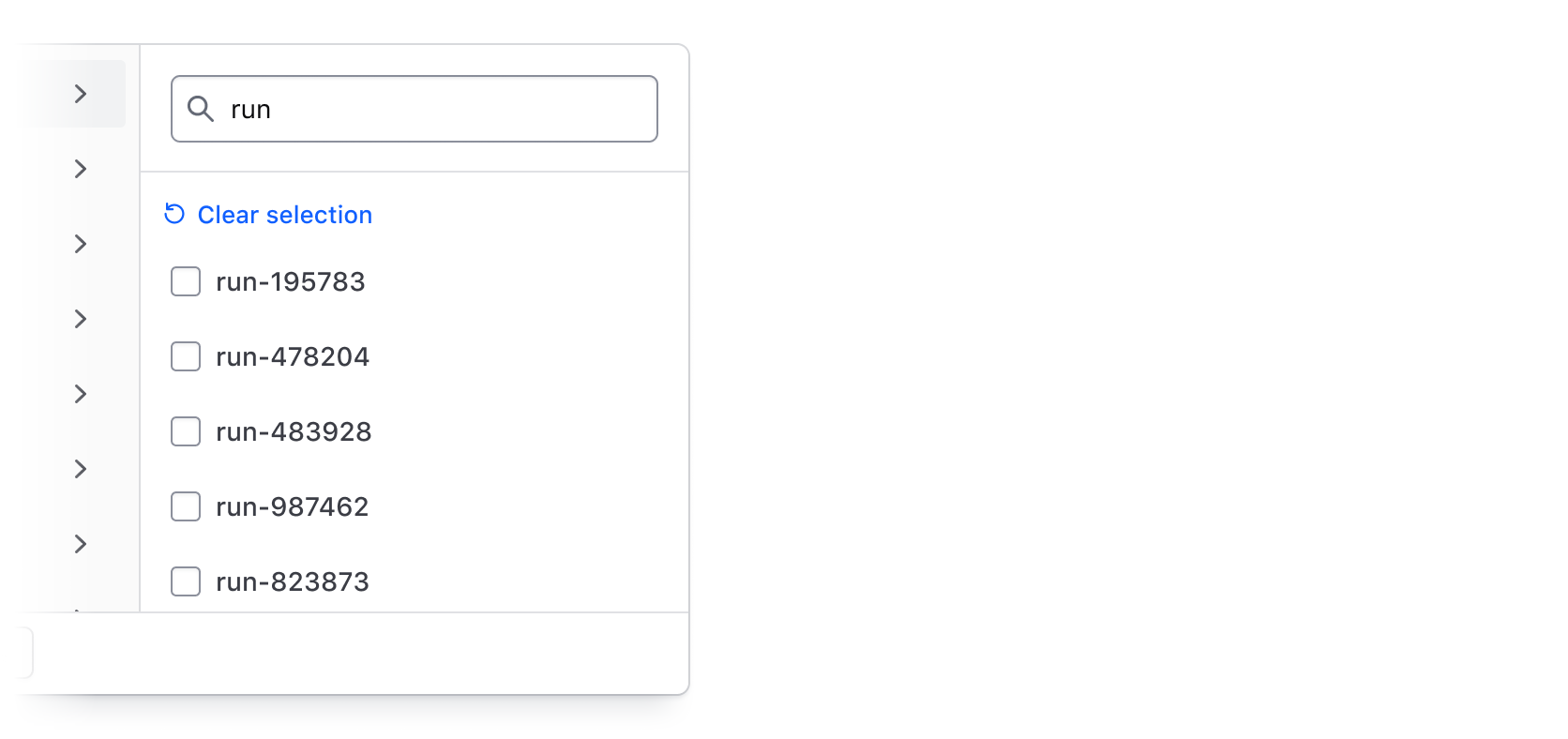 Multi-selection supports the selection of multiple values in a list of options and is the most common method of filtering. It is suited for categorical data like statuses and IDs, but can also be used more generally to filter by a handful of similar values.